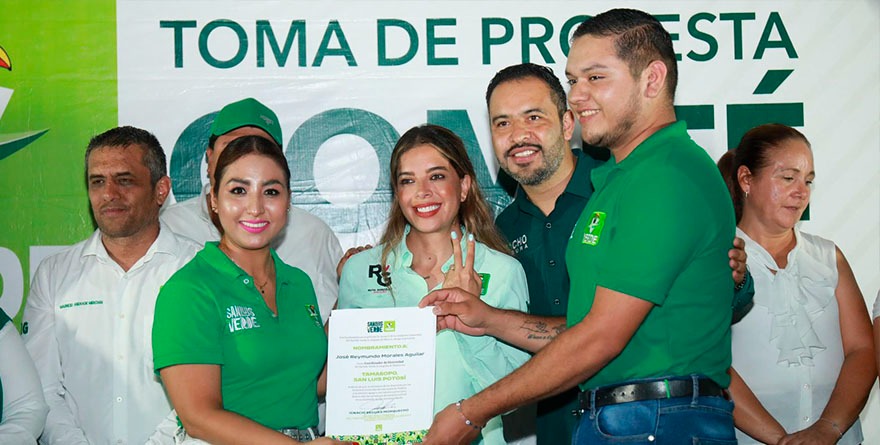 San Luis, SLP, 2 agosto 2025.- La Senadora Ruth González tomó protesta a los Comités Municipales del Partido Verde Ecologista de México (PVEM) en los municipios de El Naranjo y Tamasopo, a quienes hizo el llamado a, juntos y juntas, trabajar incansablemente por el bienestar de las familias de todo San Luis Potosí.