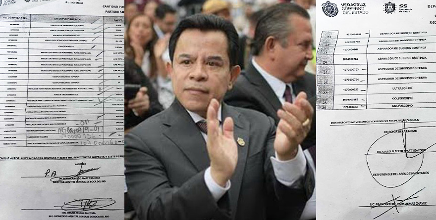 “El director de este hospital, el poblano Mario Alberto Amat Troconis, su secretaria Claudia Francisca Mariano Molinar, Roberto Yáñez Tapia, jefe de Recursos Materiales, Carla Daniela Sosa Mendoza del área de jurídico así como el administrador de nombre Ricardo Zacarías Ferrer Taibo con la recicladora La Finca, siendo su representante José Luis Flores son los responsable de la venta de ambulancias de SESVER”.