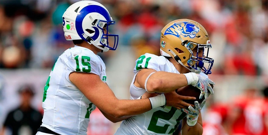 La combinación entre felinos y lanudos dio resultados positivos al coach Carlos Altamirano, pues Sergio Reséndiz, mariscal de los auriazules, conectó con Daniel Santos, de Borregos Monterrey, para otro touchdown, mientras que Roberto Medina Jr., de los albiazules, también figuró en el partido con un gol de campo de 45 yardas.