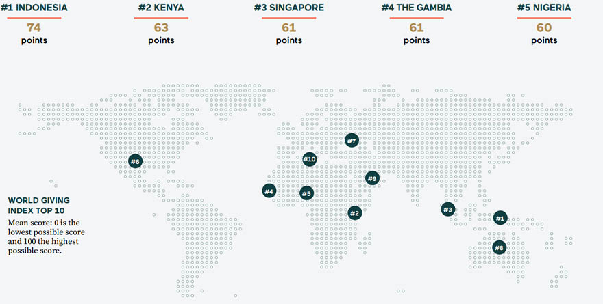 «Si miramos a Singapur, podemos ver cómo los esfuerzos gubernamentales pueden estar ayudando a aumentar la actividad caritativa», indica el Índice.