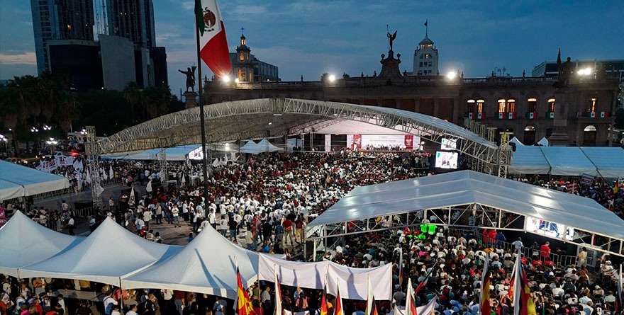 Monterrey, NL 7 septiembre 2025.- Entre porras, aplausos y hasta con reclamos, la Presidenta Claudia Sheinbaum presentó ayer, ante una Explanada de los Héroes que se pintó de guinda, un informe de las actividades de su Administración.