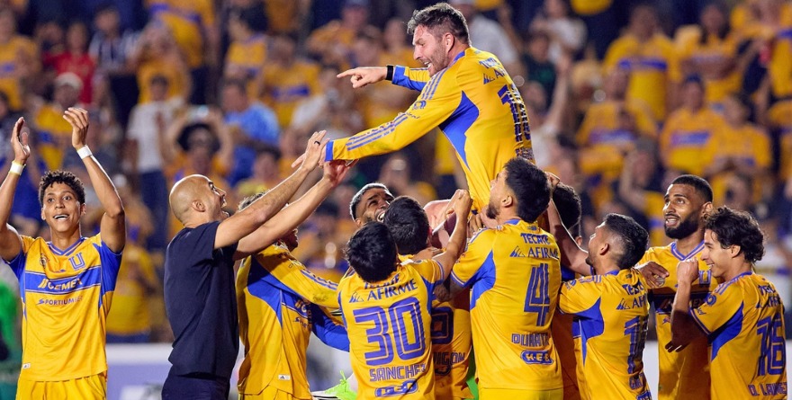 Monterrey, NL 8 marzo 2026.- Como de película, así fue como sintió Guido Pizarro el gol de Gignac que le dio el triunfo a Tigres 1-0 sobre Rayados en la edición 142 del Clásico Regio .