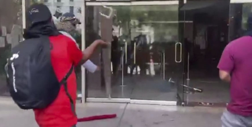 Con palos, piedras y resorteras, los integrantes de la CETEG, algunos con el rostro cubierto, ingresaron al edificio, donde laboran empleados de la Secretaría de Bienestar.