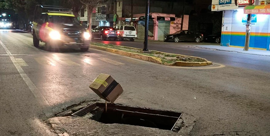 El punto peligroso se encuentra casi en la esquina con Prolongación Muñoz, justo en el cruce de semáforos. Ahí, los propios habitantes se vieron obligados a improvisar con cajas y objetos para advertir a los conductores, ante la falta de respuesta de las autoridades municipales.
