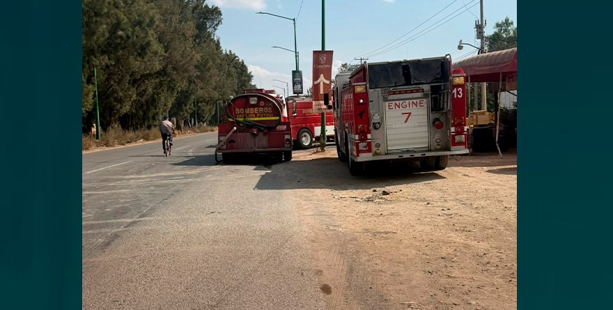Soledad de Graciano Sánchez, SLP, 5 diciembre 2025.- La Dirección de Seguridad Vial y Movilidad de Soledad de Graciano Sánchez implementó un dispositivo de abanderamiento en Bulevar Valle de Los Fantasmas, a la altura de la colonia Los Gómez, debido a un incendio registrado en la zona.