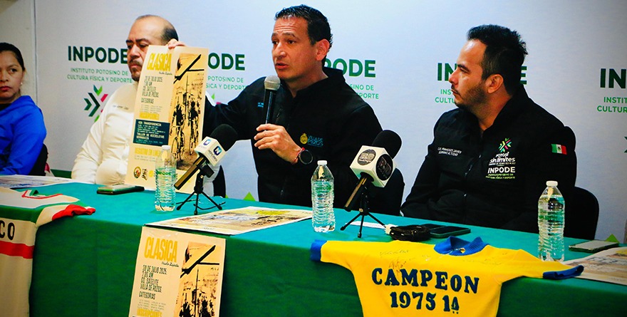 San Luis, SLP, 15 julio 2025.- El Gobierno Municipal de Villa de Pozos, en coordinación con el Instituto Potosino de Cultura Física y Deporte (INPODE), llevó a cabo la presentación oficial de la 34 edición de la Carrera Clásica de Ciclismo «Nacho Zapata», que se celebrará el próximo 20 de julio a partir de las 07:00 horas en Ciudad Satélite.
