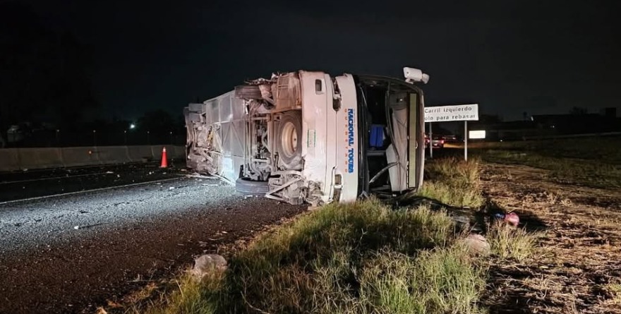 Salamanca, Gto., 1 febrero 2026.-Una madrugada de angustia se vivió este domingo sobre la carretera Panamericana, luego de que un autobús de pasajeros volcara a la altura del tramo que conecta la comunidad de Valtierrilla con la cabecera municipal de Salamanca. El accidente, registrado en las primeras horas del 1 de febrero, movilizó a una decena de unidades de emergencia y dejó como saldo un número preliminar de 15 personas lesionadas.