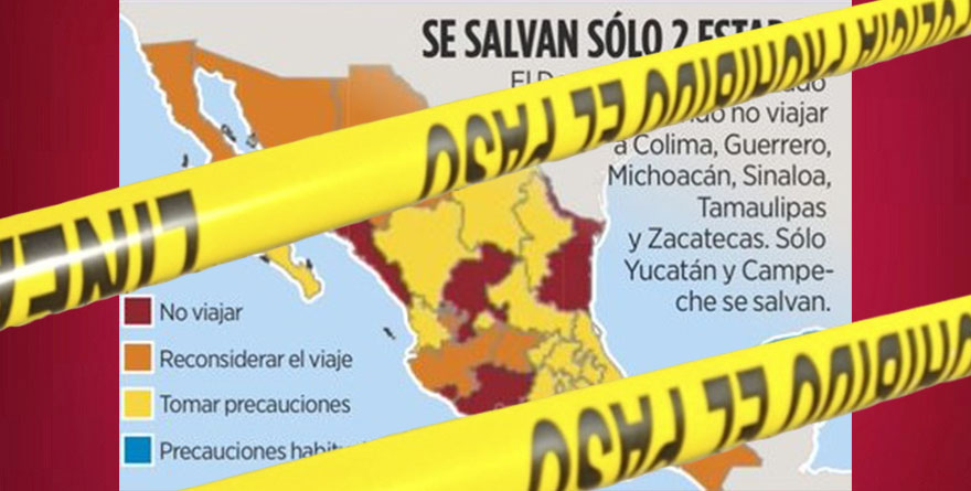«En México se cometen numerosos delitos violentos, como homicidios, secuestros, robos de vehículos y robos. Existe el riesgo de violencia terrorista, incluyendo atentados», dice la alerta publicada por el Departamento de Estado de EU.