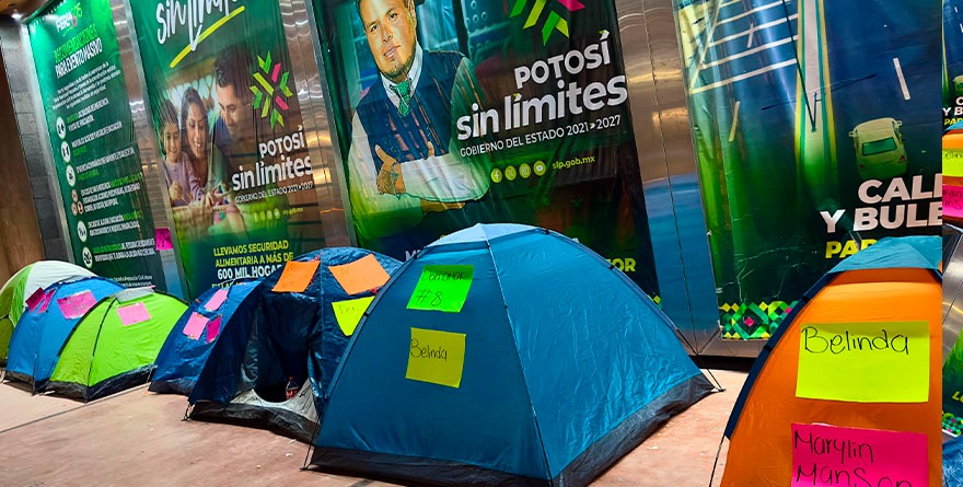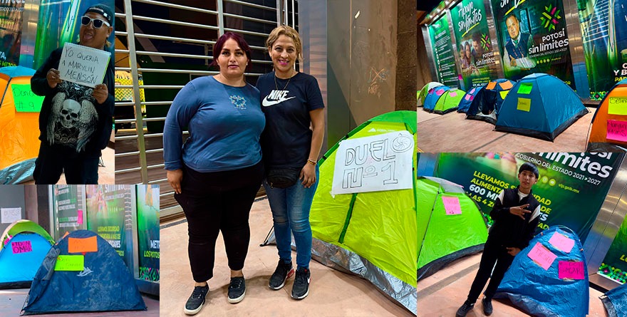 San Luis Potosí, SLP, 7 agosto 2025.- La fiesta de los potosinos aún no comienza y ya se vive con intensidad. La noche de este jueves, decenas de personas instalaron casas de campaña, cobijas y sillas a las afueras de la Feria Nacional Potosina (FENAPO) para apartar lugar y ser los primeros en entrar este viernes al Teatro del Pueblo.