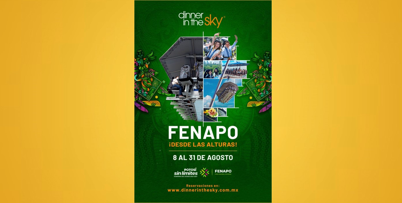 La nueva atracción estará instalada en la zona de restaurantes y es una muestra de la confianza que empresarios visionarios tienen en San Luis Potosí, al apostar por eventos de talla internacional pues Dinner In The Sky ha estado presente en grandes festivales y ciudades como Las Vegas, Mónaco, Ciudad de México o Cancún, y ahora se suma a la Fenapo con una propuesta perfecta para quienes buscan experiencias únicas durante su visita.