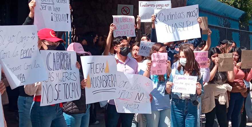 El movimiento de este día, fue organizado por los estudiantes tras darse a conocer un nuevo caso de presunto acoso y agresión sexual por parte de un profesor de la Facultad de Economía, quien habría hecho tocamiento a una alumna sin su consentimiento. Al grito y consigna de “¿Cuántas más UASLP?” y “La UASLP protege acosadores”, hicieron un llamado al rector para que atienda las quejas y ponga castigos ejemplares, dejando a un lado su compañerismo con los docentes señalados.