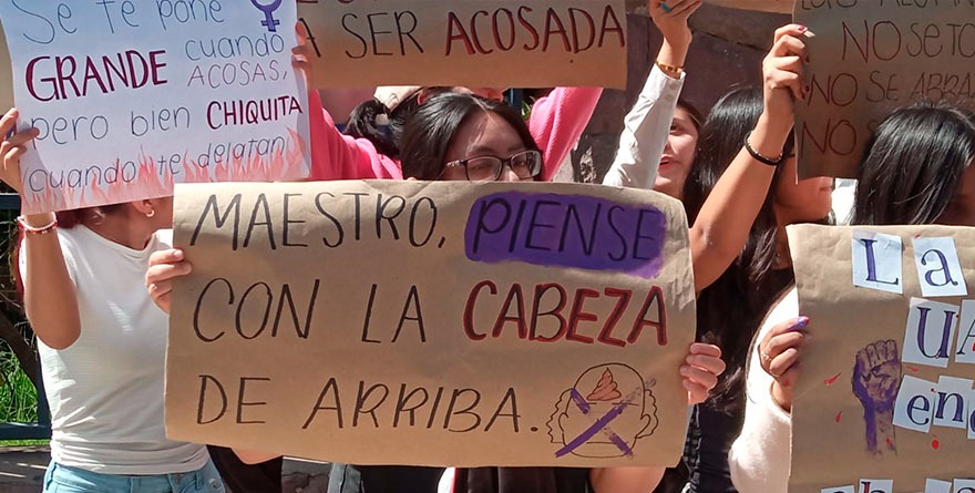 Los manifestantes aseguraron que, lejos de ser un espacio seguro y libre de violencia, la UASLP, bajo la administración del rector Alejandro Zermeño Guerra, se ha convertido en un refugio institucional para docentes señalados por hostigamiento y acoso sexual. En lugar de ser investigados y sancionados, muchos de ellos reciben protección o incluso reconocimientos por “trayectorias destacadas”, en una muestra del encubrimiento que predomina dentro de la casa de estudios.